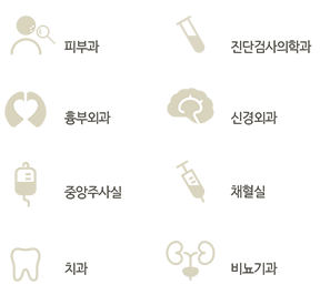 진료과와 진료지원부서를 상징하는 픽토그램을 모아서 볼까요?