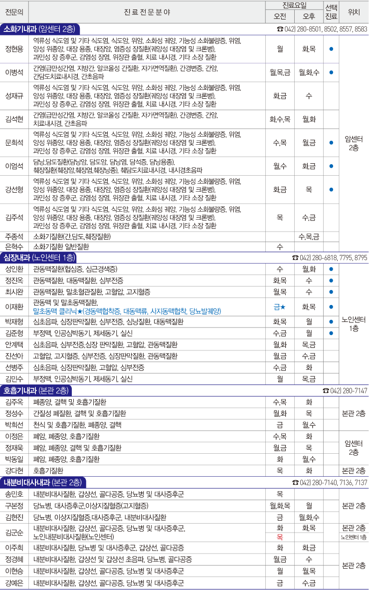 [2017년 9월] 외래진료 시간표